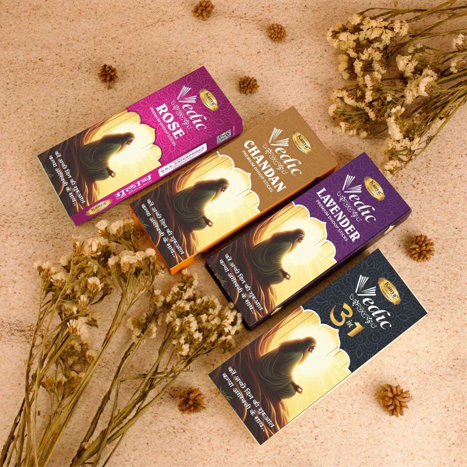 With a deep respect for nature and purity, our products are made from carefully selected herbs, resins, essential oils, and floral extracts — free from harmful chemicals. From classic hand-rolled incense sticks to premium cones and dhoop, every Kanya Incense product is designed to enhance meditation, relaxation, and spiritual rituals.